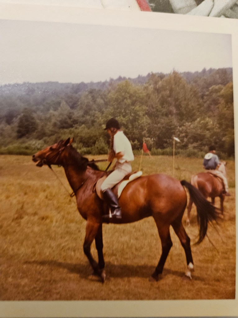 A few years later we went to Pony Club camp. Topps approved of this. When we weren’t riding, he was turned out with the other campers’ horses in the huge cross country field.